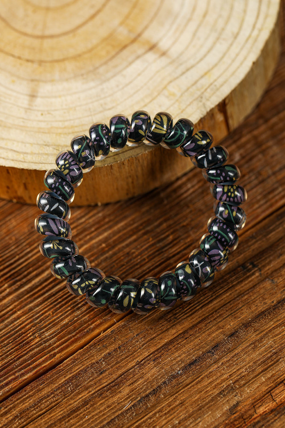 3 PCS Black Floral Phone Cord Hair Scrunchies