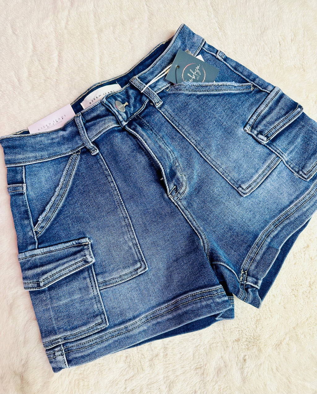 Mineral Wash High Waist Bell Bottom Crop Jeans: Blue