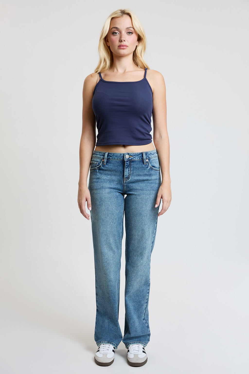 Women's Mid Rise Relaxed Rigid Straight Leg Jeans