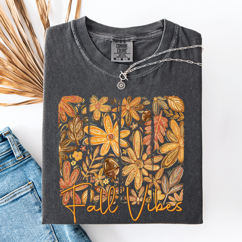 Fall Vibes, Colorful Autumn Flowers, Comfort Colors T-Shirt