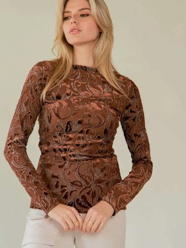 FINAL SALE-Mesh Pattern Printed Long Sleeve Layering Top